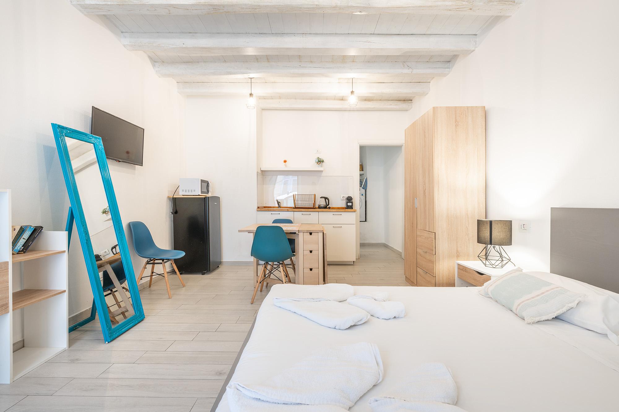 Our rooms are large, spacious, and finely renovated to ensure maximum comfort during your stay. Each room is designed to offer a welcoming and modern environment, where every detail is thought out for your relaxation. Two of our rooms have balconies, each with a small table where you can relax, sip a drink, or have breakfast in total tranquility. Every room is equipped with air conditioning for maximum comfort in any season, a refrigerator to store your favorite drinks and snacks, a flat-screen TV for your entertainment, a coffee machine to start the day in the best way, and a hairdryer for your convenience. Every corner of our rooms is designed to make you feel at home, offering you a relaxing refuge in the heart of Cagliari.