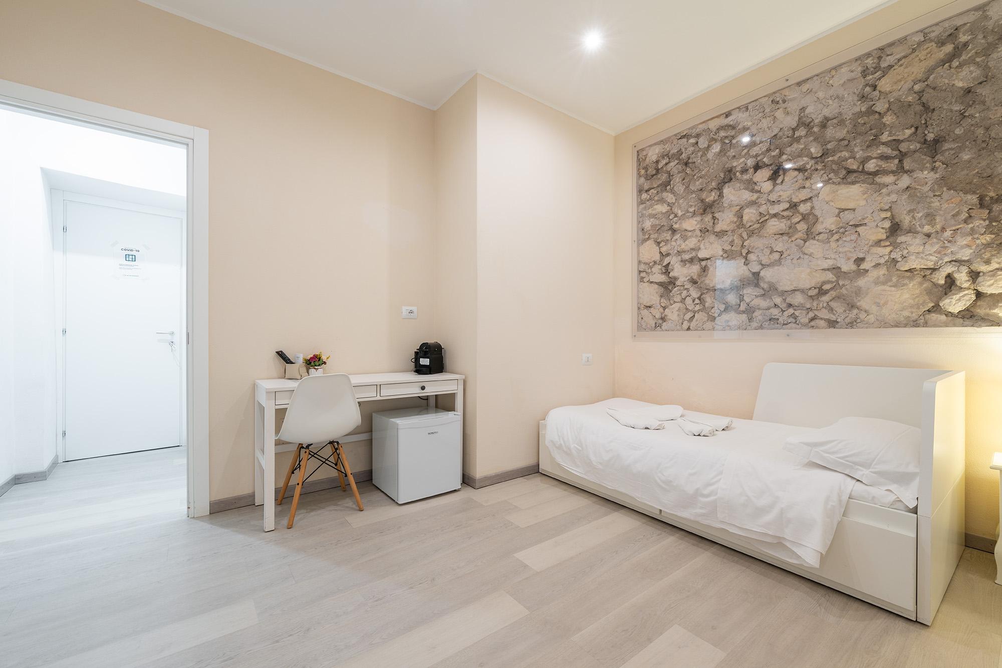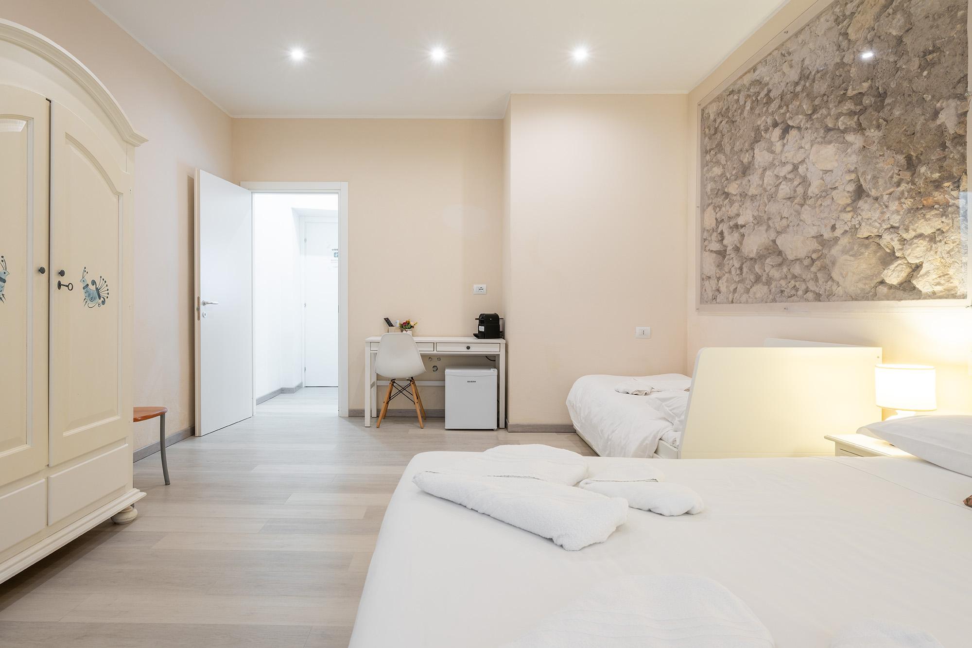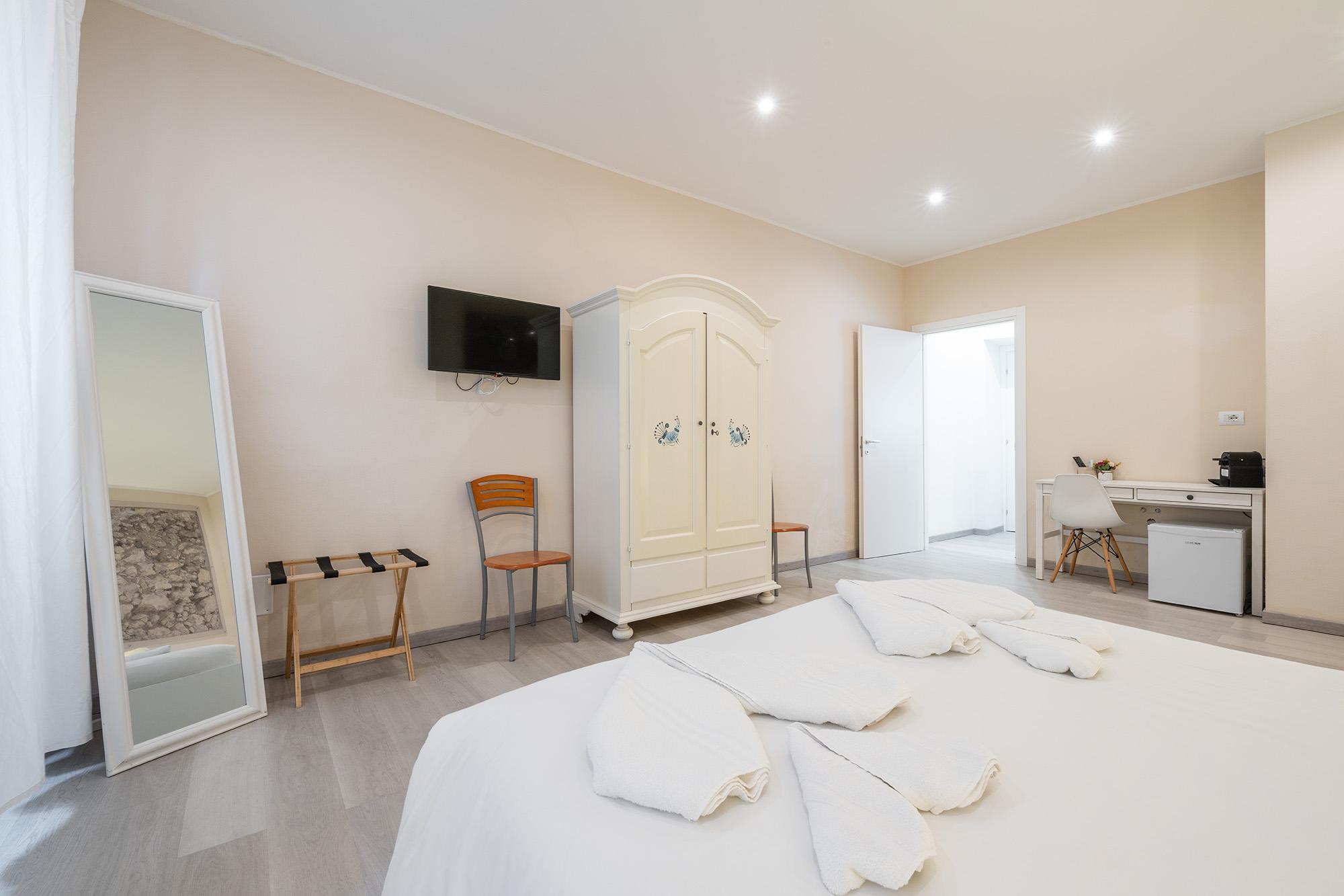 Our rooms are large, spacious, and finely renovated to ensure maximum comfort during your stay. Each room is designed to offer a welcoming and modern environment, where every detail is thought out for your relaxation. Two of our rooms have balconies, each with a small table where you can relax, sip a drink, or have breakfast in total tranquility. Every room is equipped with air conditioning for maximum comfort in any season, a refrigerator to store your favorite drinks and snacks, a flat-screen TV for your entertainment, a coffee machine to start the day in the best way, and a hairdryer for your convenience. Every corner of our rooms is designed to make you feel at home, offering you a relaxing refuge in the heart of Cagliari.
